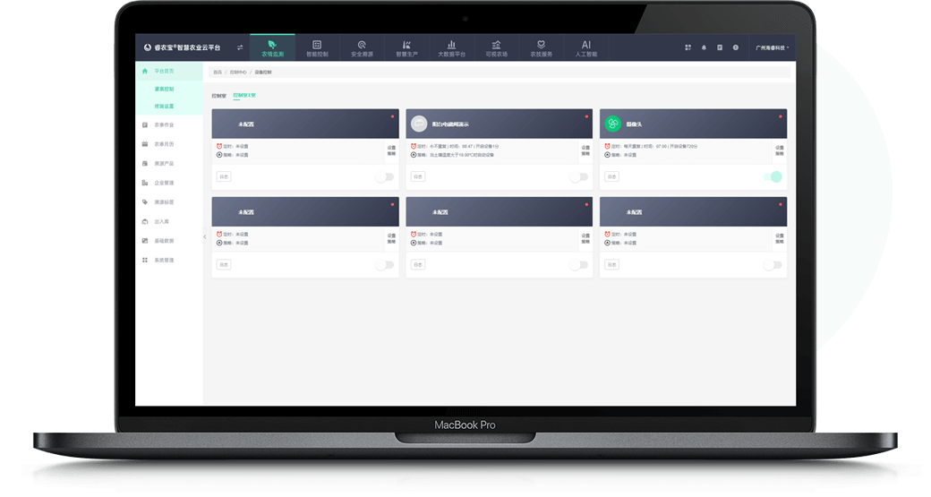 通過睿農(nóng)寶APP,可以對設(shè)備進行遠程控制。同時還可以通過APP設(shè)置智能控制策略,可以實現(xiàn)定時、定點的控制設(shè)備。結(jié)合“睿農(nóng)寶”環(huán)境監(jiān)測設(shè)備,還可以根據(jù)現(xiàn)場環(huán)境情況進行智能控制。例如當(dāng)溫度過高時打開風(fēng)機,當(dāng)光照不足時打開日光燈等,實現(xiàn)自動化生產(chǎn)管理。